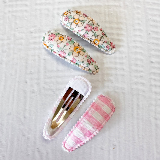 Elsie Vintage Fabric Snap Hair Clips - Set of 2