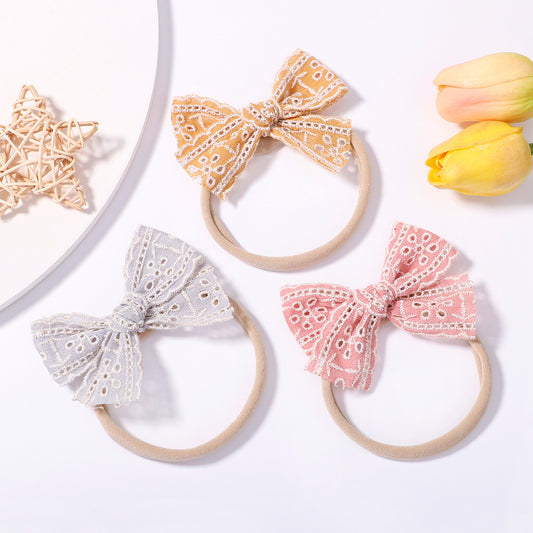 Sadie Flower Embroidery Bow Hair Clips - Set of 2