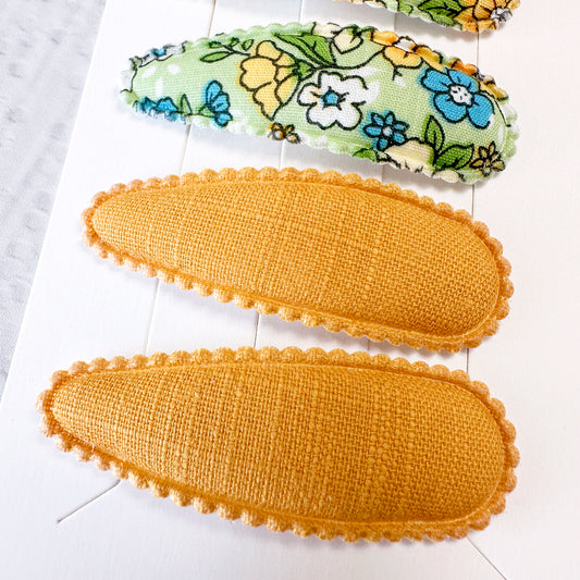 Dorothy Vintage Fabric Snap Hair Clips - Set of 6 - Mustard & Green