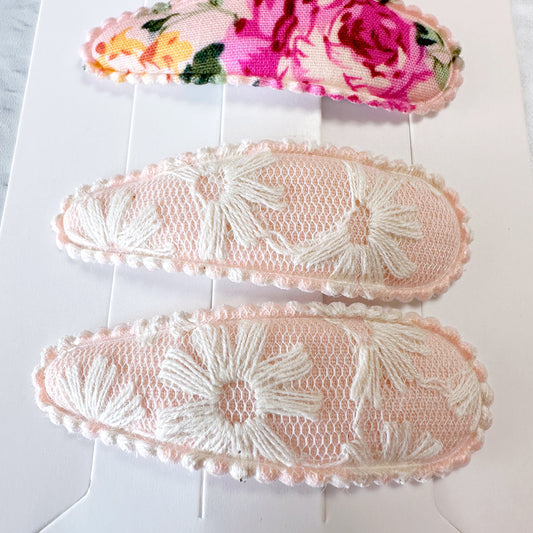 Dorothy Vintage Fabric Snap Hair Clips - Set of 6 - Pink Floral