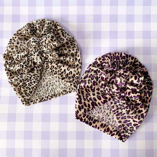 Gwendolyn Velvet Leopard Triple Knot Baby Turban