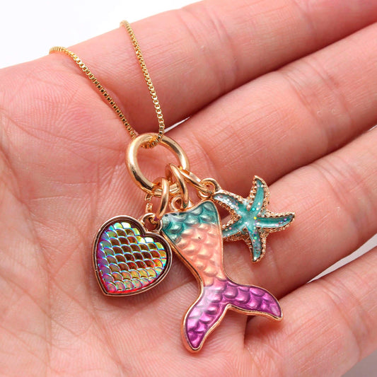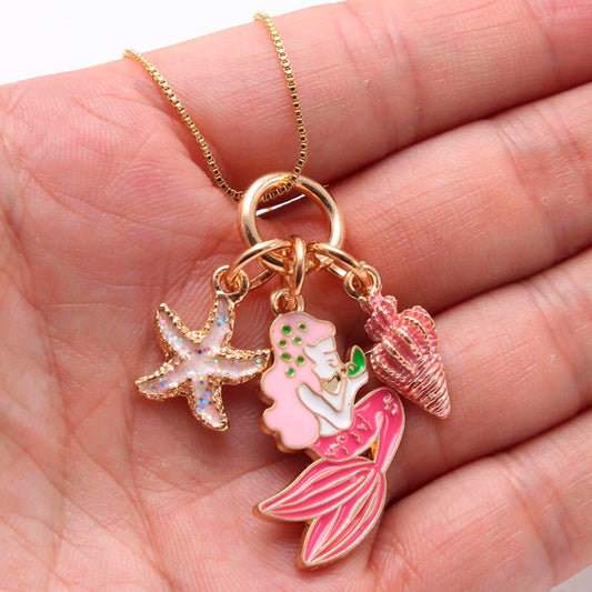 Under The Sea Mermaid Gold Charm Necklace - Pink Mermaid Goddess
