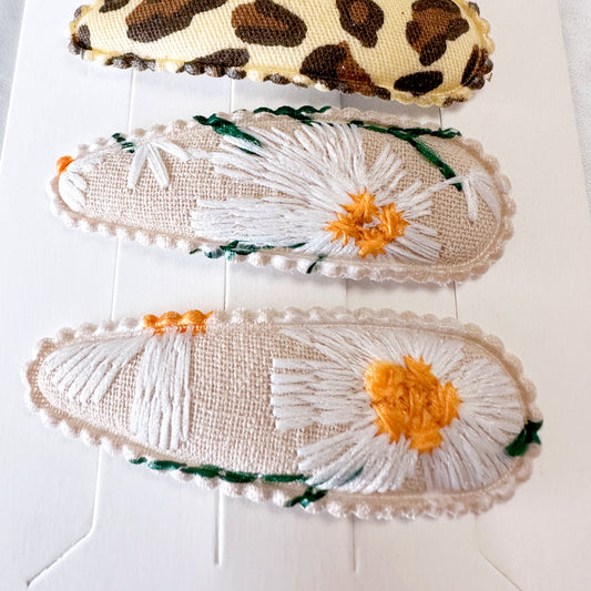 Dorothy Vintage Fabric Snap Hair Clips - Set of 6 - Brown Leopard
