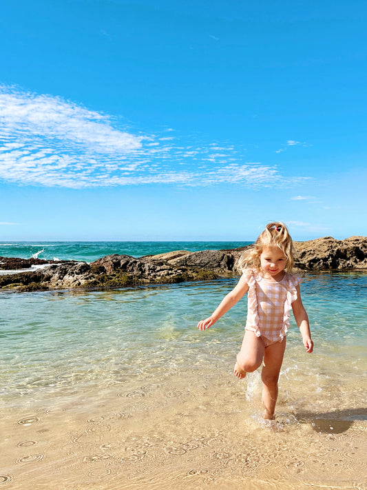 Dixie Ruffle Gingham Honey Yellow Girls Swimsuit