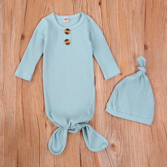 Finley Ribbed Long Sleeve Knotted Baby Gown & Hat Set