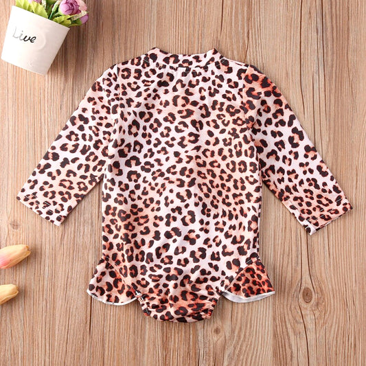 Savannah Long Sleeve Zipper Leopard Print Girls Swimsuit