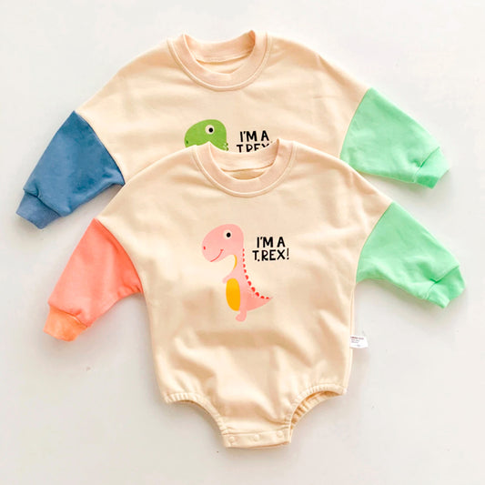 I'm A T-Rex Dinosaur Colourblock Long Sleeve Romper