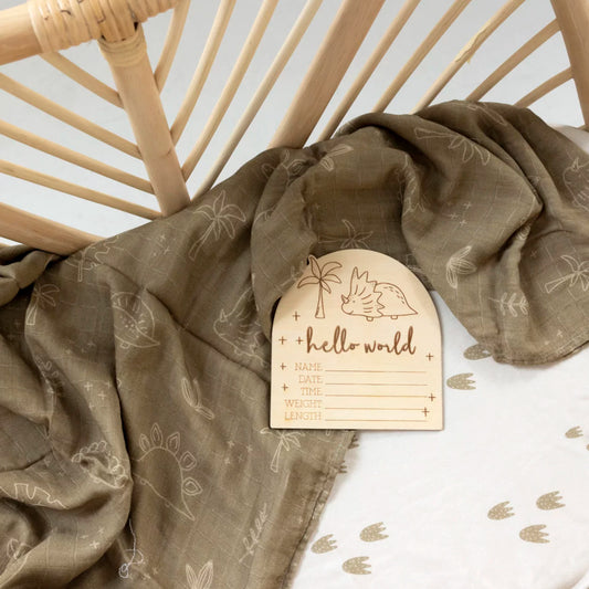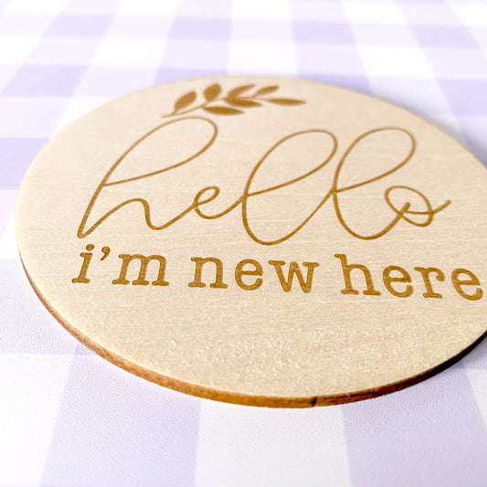 Hello I'm New Here Wooden New Baby/Birth Announcement Disc