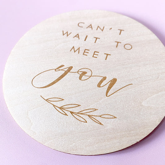 Can't Wait To Meet You Wooden Pregnancy Announcement Disc