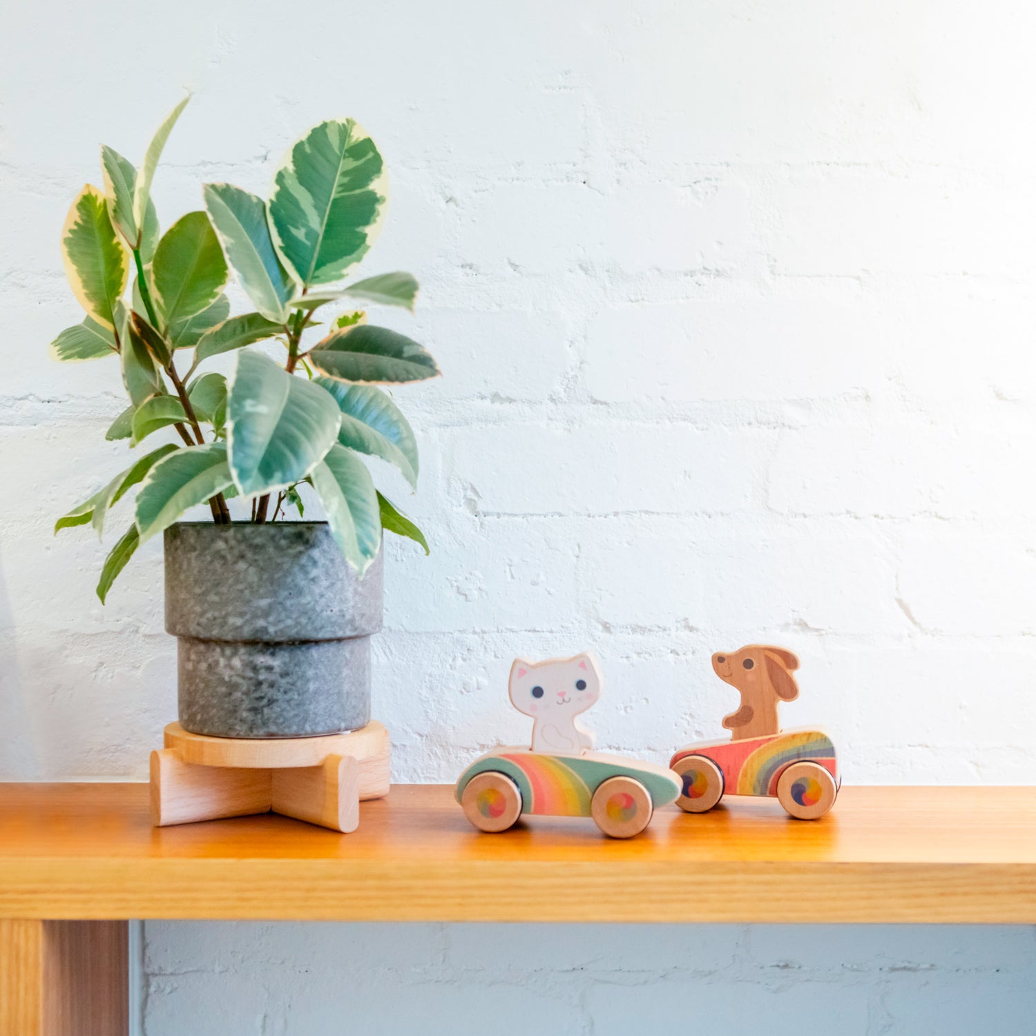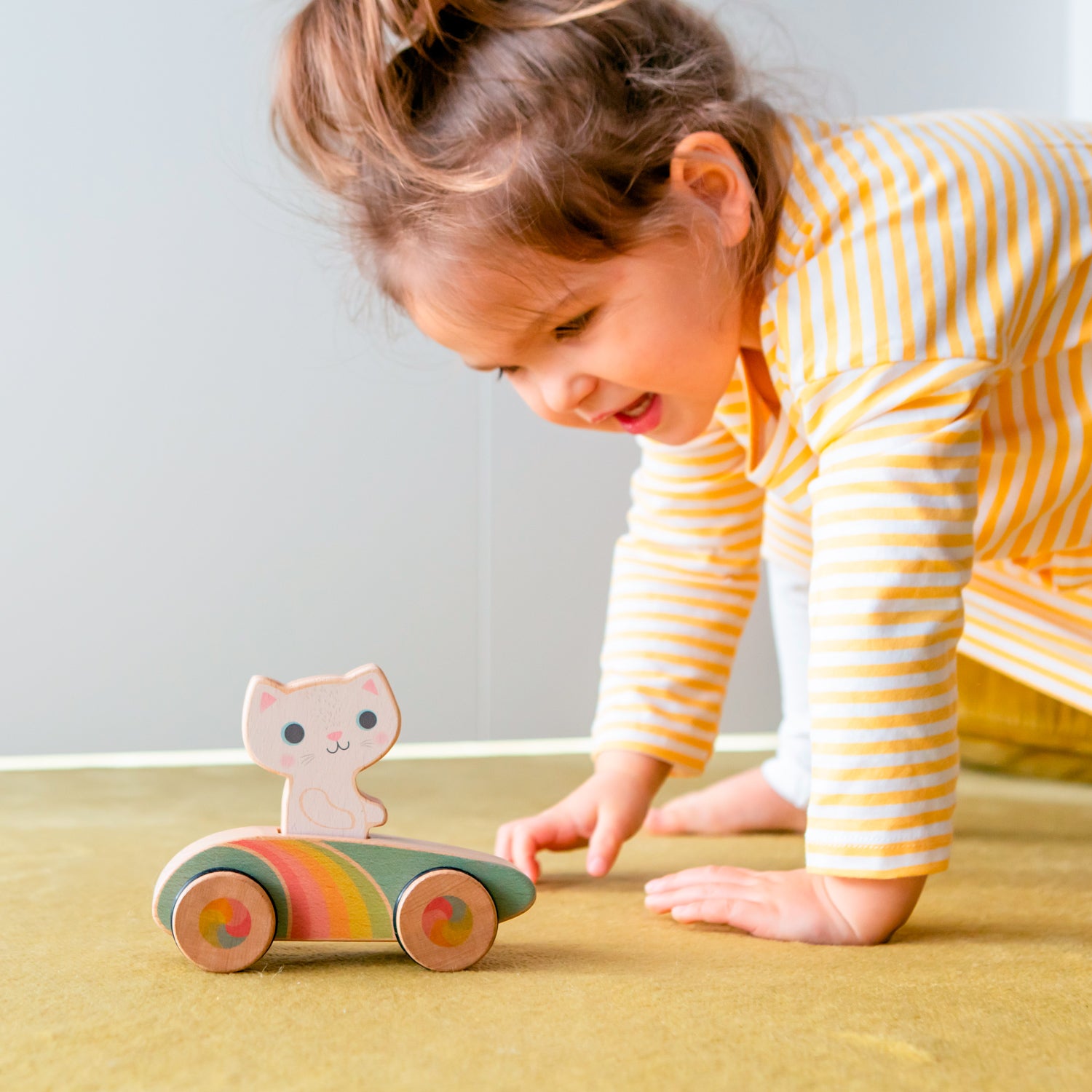 Rainbow Roller – Cruisin’ Kitty is designed especially for little hands. Made from sustainable plantation beechwood and fitted out in retro racing rainbow colours, Cruisin’ Kitty is ready for on-the-go fun!