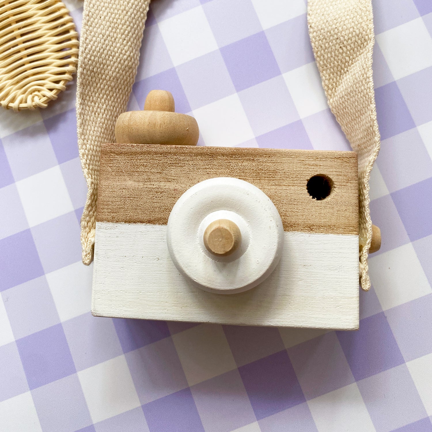 As each camera is made from natural wood and handpainted with non-toxic paint, there may be slight variations in the wood grain or paint - each camera is unique.