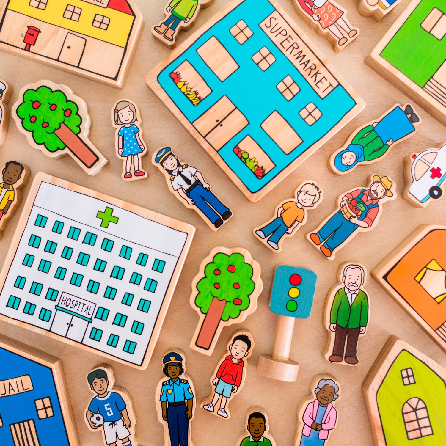 The thick yet lightweight wooden blocks have been designed for little hands to easily grasp. A brilliant play-set for encouraging children to use their imagination and develop their storytelling skills.