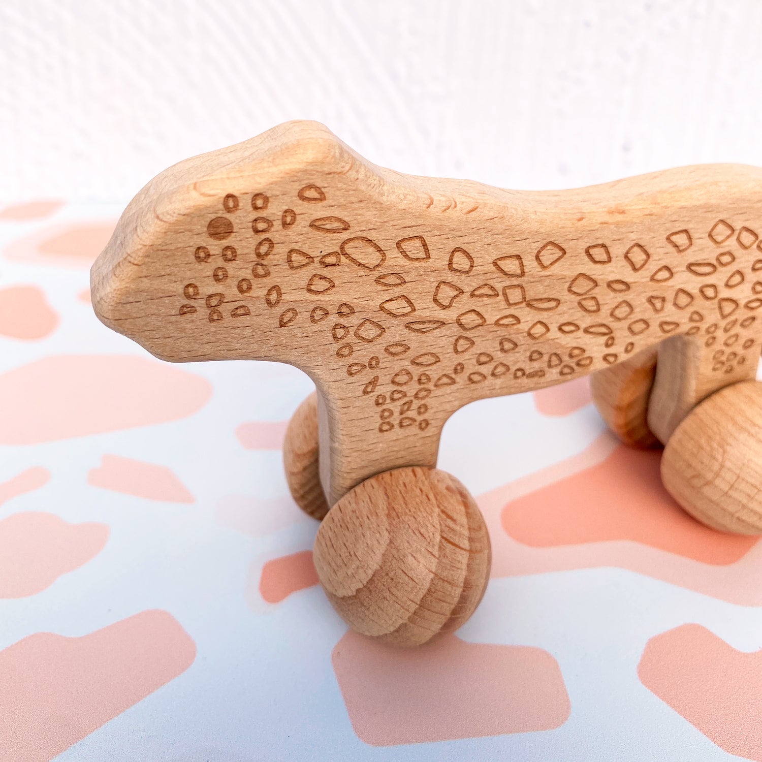 This beautifully handcrafted push along leopard is designed to inspire your child's imagination and makes such a fun edition to any playroom.